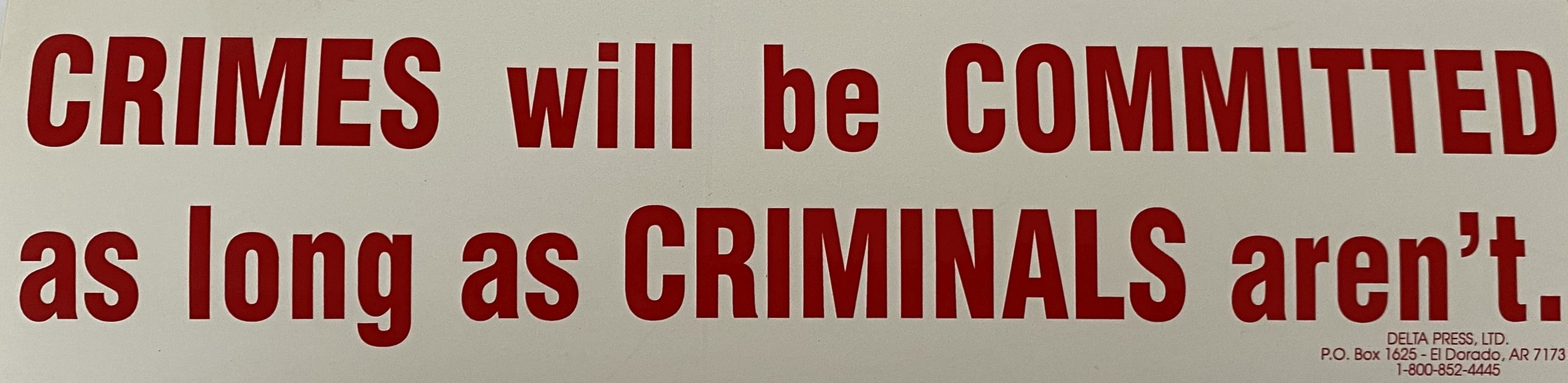 Crimes Will Be Committed As Long As Criminals Aren't (Sticker) ($4.95)