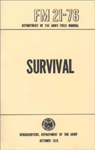 FM 21-76 Department of the Army. 1970 Field Manual. Chapters cover navigation, health, food and fire making. Cold weather, desert, sea and jungle conditions are also covered. 285 pages, illustrated, black & white, 5.5” x 8.5”
